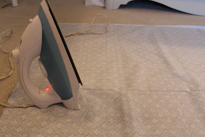2. Measure your space needing to be covered. I added an inch onto the length and width of the actual size I needed so when I attached it to the wall, I could fold the edge under to create a crisp, clean line, showing no frayed edges.