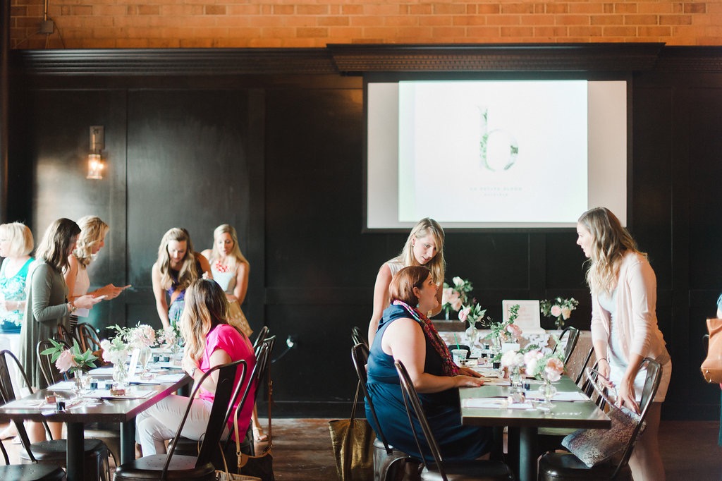 Lauren Hooker of Elle & Company taught on graphic design and branding. The guests got to play around in Illustrator with a template Lauren provided and made their very own inspiration board. Alyssa Thiel of Parris Chic Boutique then taught on calligraphy. As she walked around to help each attendee, it was so fun to see the improvement over the course of the class! Finally, I (Michaela) taught on interior design & styling principals and Andrea Pesce taught on how to improve your photography, both in digital and with your iPhone.